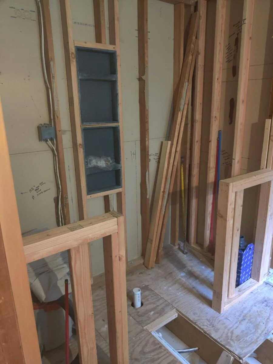 This once neglected closet has been torn down and reenvisioned into a unique dual shower so each individual can pick their temperature and spray pattern.